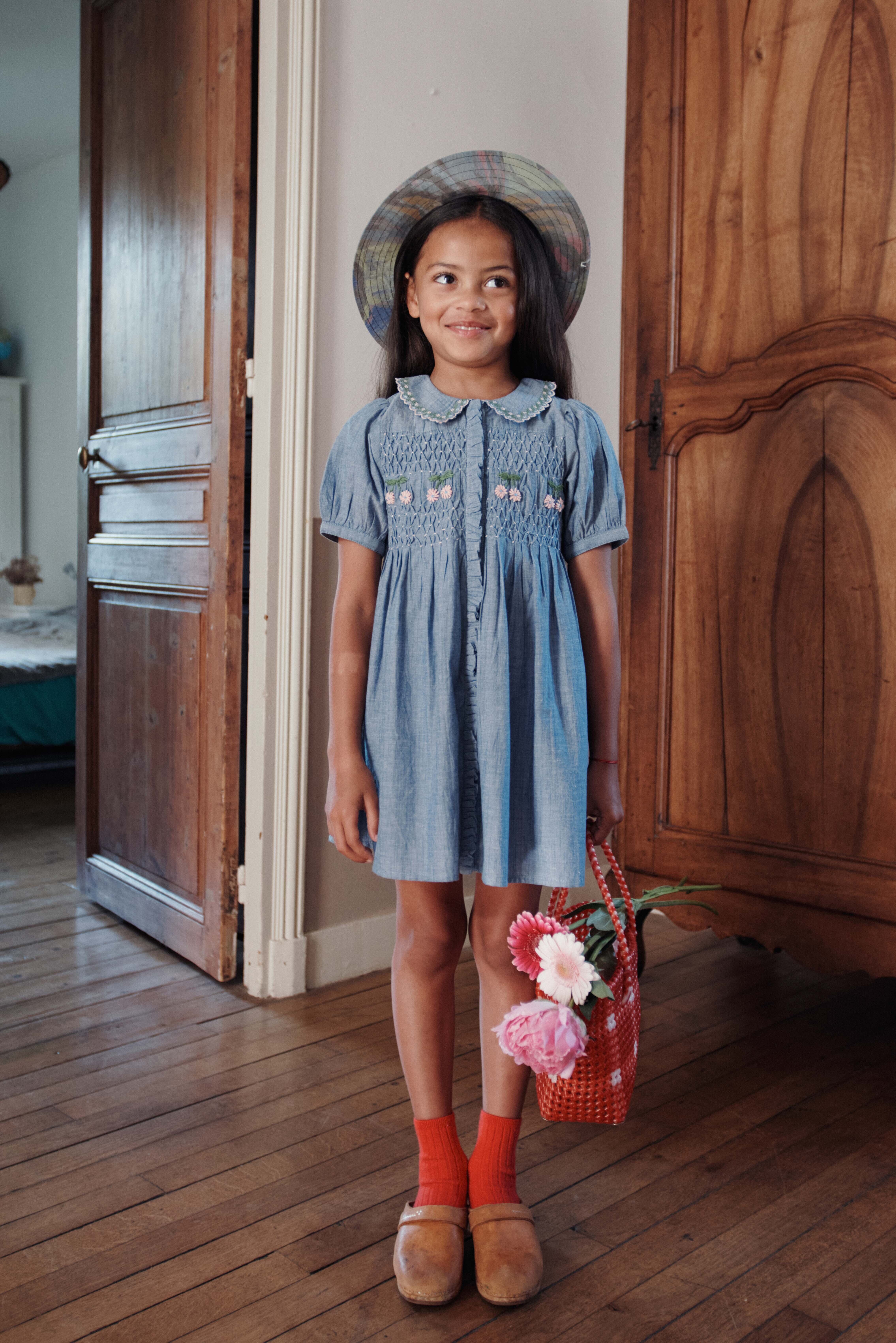 Emile et Ida スモッキング刺繍 シャンブレードレス(ブルー)