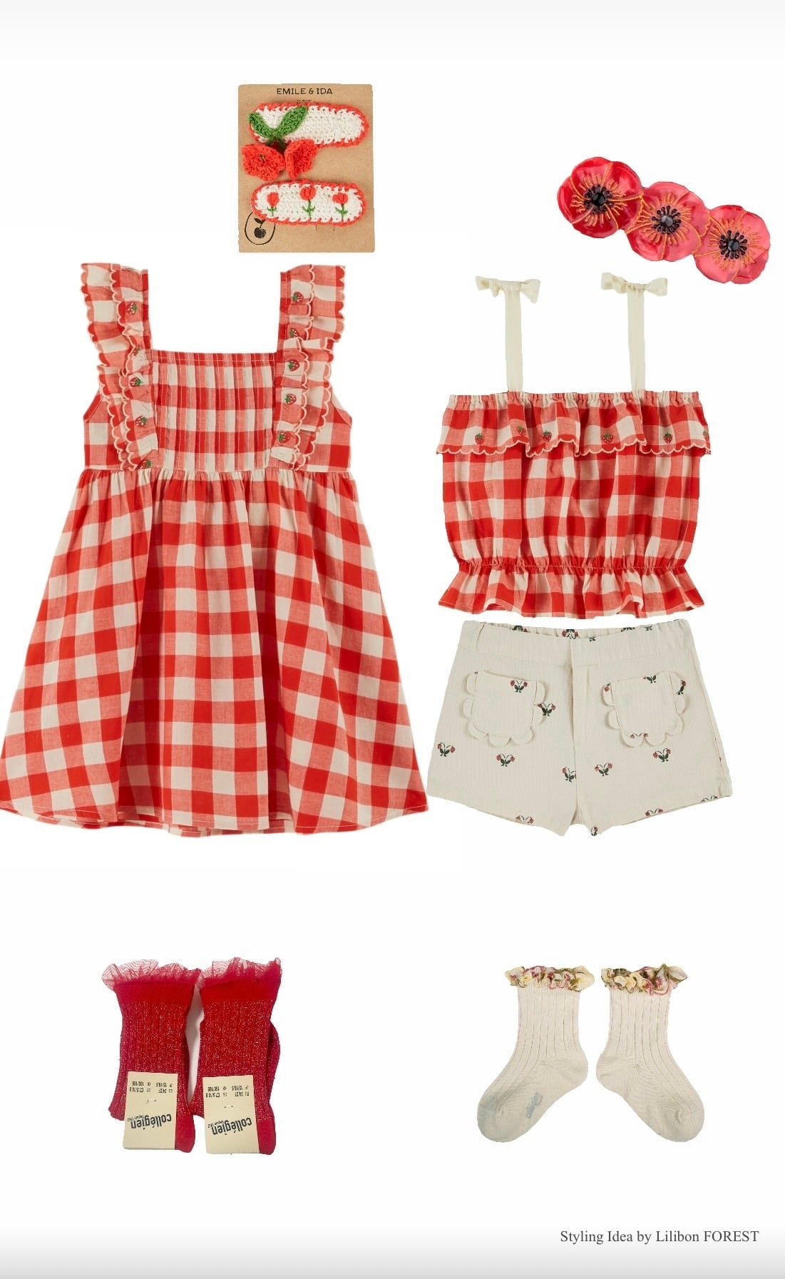 Emile et Ida いちご刺繍 ギンガムチェックドレス(レッド×エクリュ)