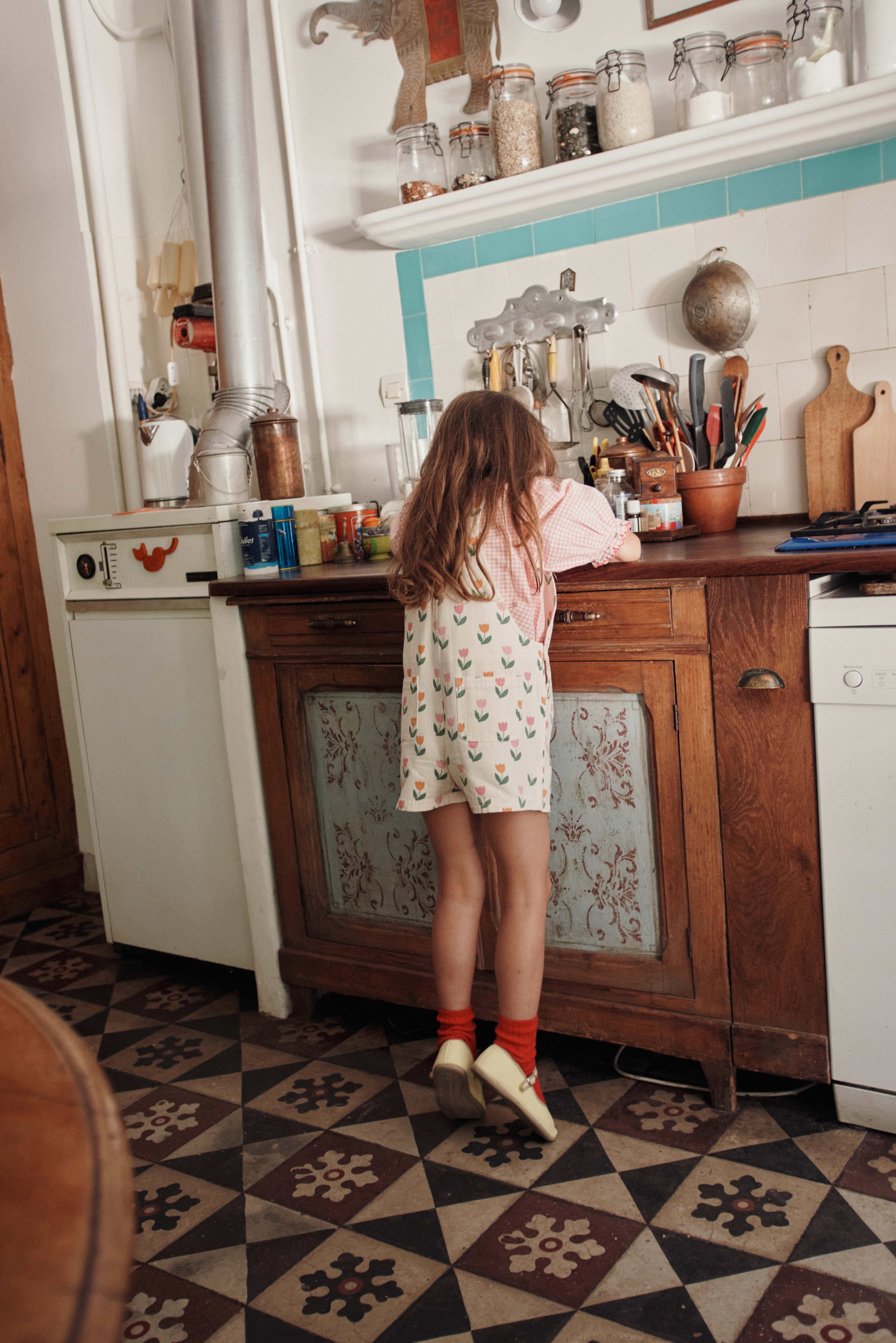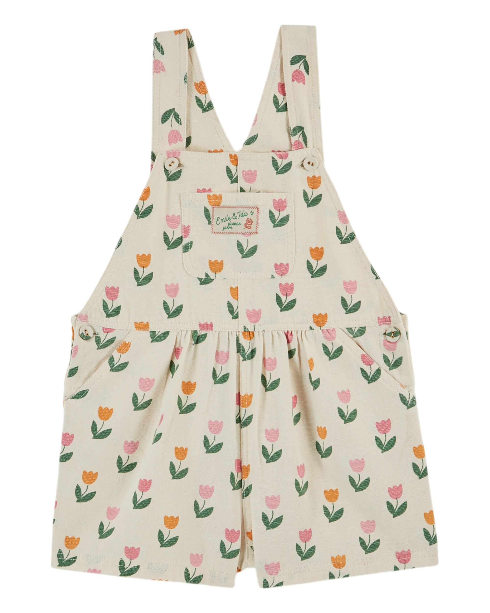 Emile et Ida チューリッププリント コットンキャンバス ショートオーバーオール
