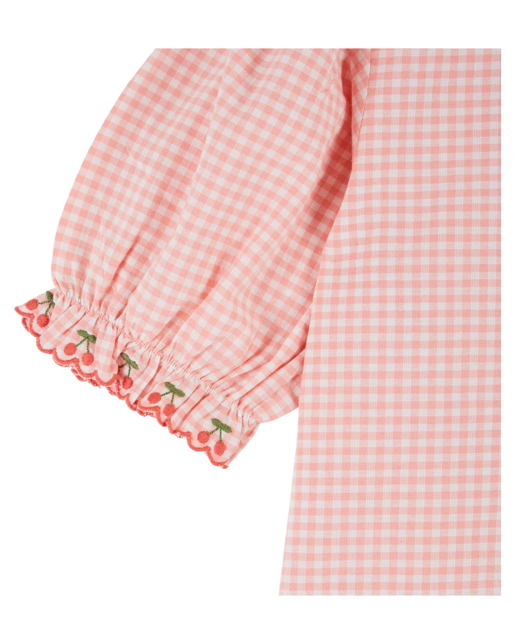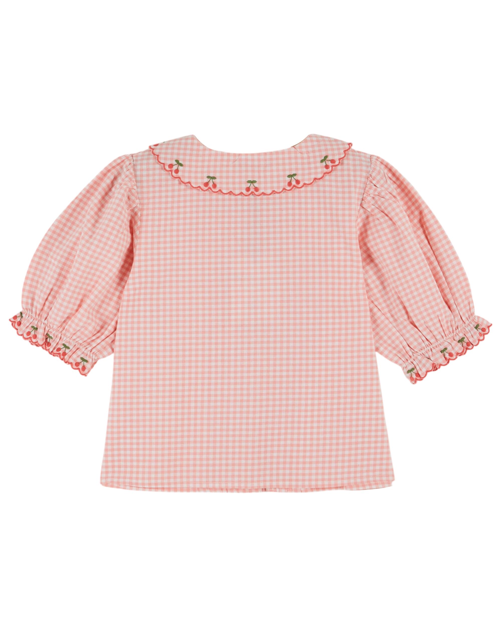ピンクとエクリュの小さなギンガムチェックが愛らしい、オーガニックコットンのブラウス。