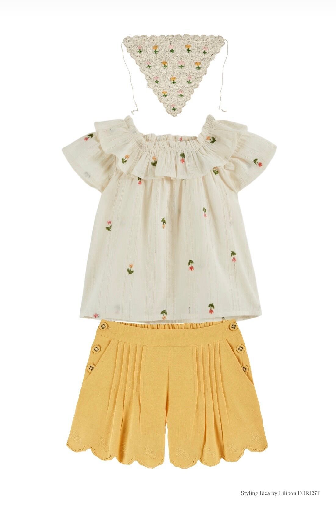 Emile et Ida チューリップ刺繍 エクリュ クロシェヘッドスカーフ