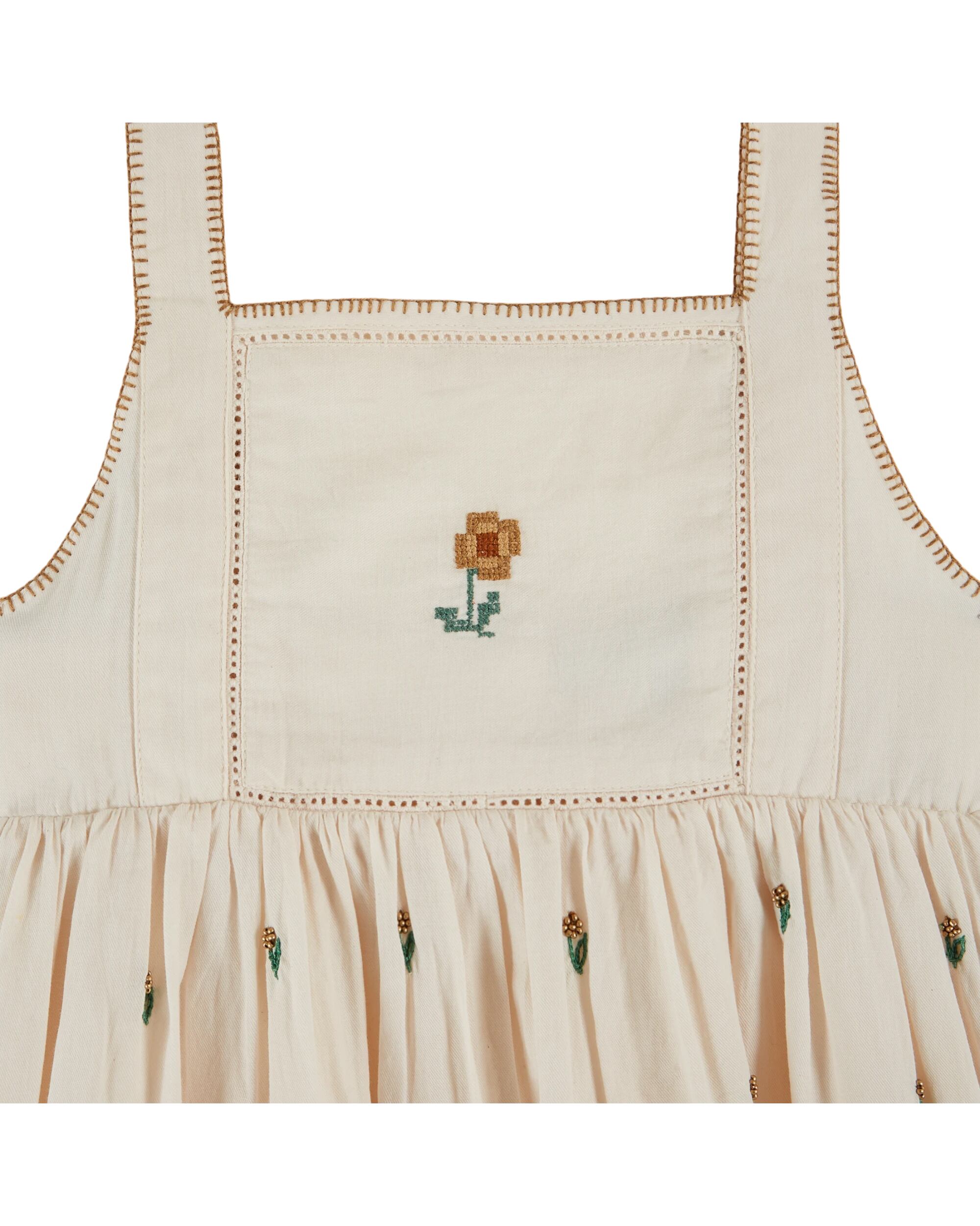 【Outlet/5Y110cm】Emile et Ida エクリュ ビーズ刺繍ストラップドレス